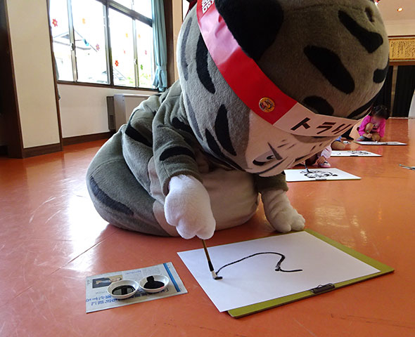 今回の「体験」では、筆の里工房さんの優しい課長さん(だいすき!)が「竹虎図」のお話をしてくれたり、ボクのクイズを出してくれたリン♪