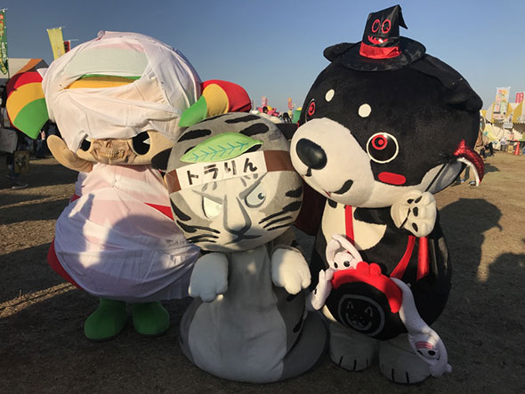ボクを飛ばして、左から静岡県下田市「ぺるりん」、埼玉県所沢市「トコろん」、熊本県「ころう君」♪