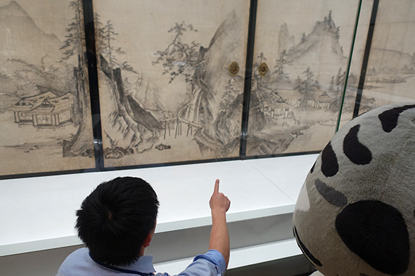 森研究員:つぎは、「重要文化財 山水図襖(さんすいずふすま) 小栗宗継筆 (京都国立博物館所蔵)」だよ。