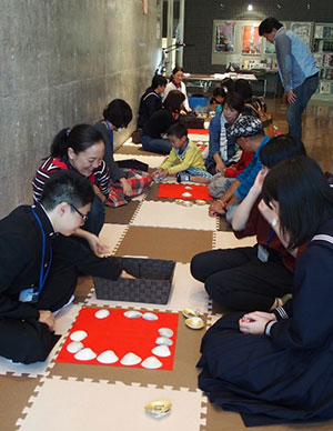 当館の「貝合わせで遊ぼう!」ブースではハマグリの貝殻を使った雅なゲーム、「貝合わせ」で遊びました。